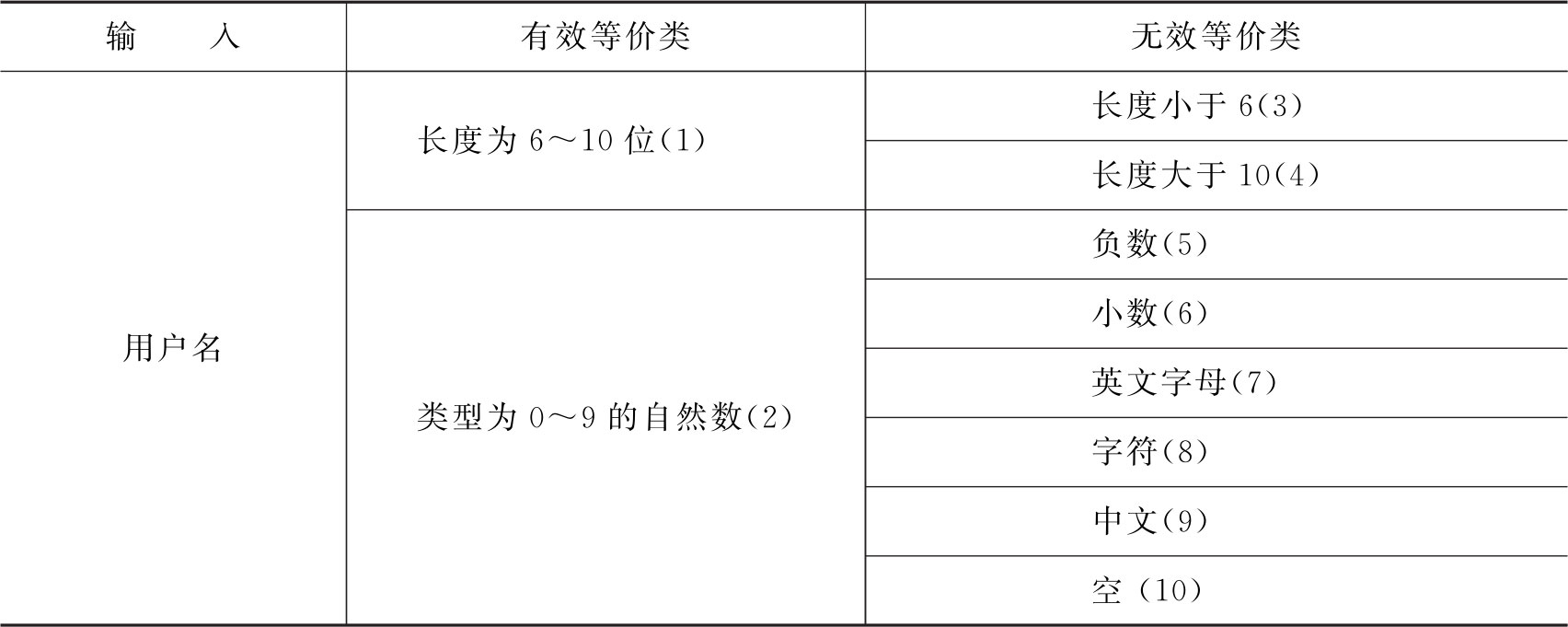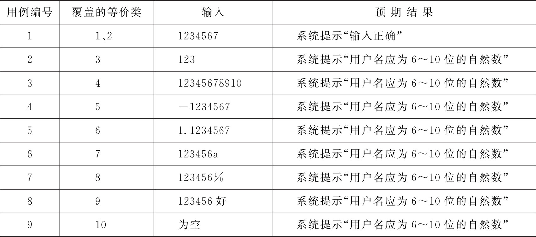 表1.2 等价类划分法测试用例设计_“用户名”字段