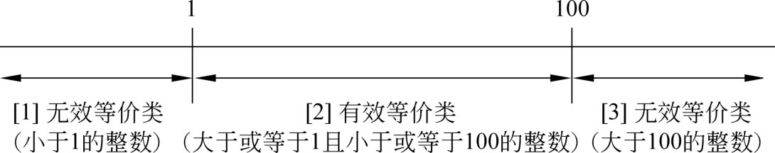 以需求“计算两个1~100的整数和”中的“1~100”为例划分等价类,如图1.2所示。