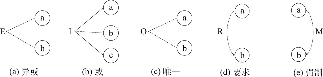 为了表示原因与原因之间、结果与结果之间可能存在的约束条件,因果图中通常还附加一些表示约束条件的符号,如图3.6所示。