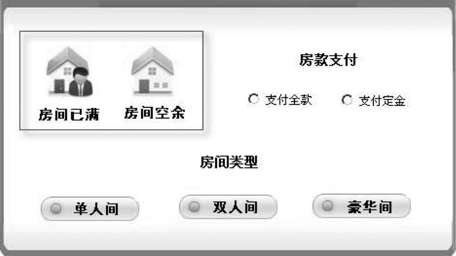 注意 : 需求中描述当房间没有空余时,“房间已满”灯亮。但是,读者会发现界面原型中并未显示“灯”。在此,值得一提的是,实际项目中界面原型可能会采用其他方式来实现需求说明中的要求,所采取的表现方式或许更加易于理解和使用。建议开发人员确定界面原型后,及时与客户进行沟通并确认,便于后续工作在此基础上顺利开展。