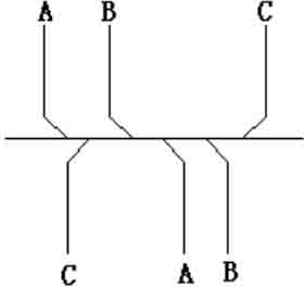 要表示电路相序的变换、极性的反向、导线的交换等,可采用交换号表示,如图1-33(d)所示。