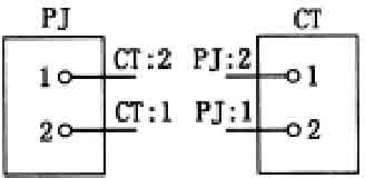 对于接线图,中断表示法的标注采用相对标注法,即在本元件的出线端标注去连接的对方元件的端子号。如图1-39所示,PJ元件的l号端子与CT元件的2号端子相连接,而PJ元件的2号端子与CT元件的1号端子相连接。