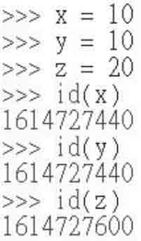 对于Python而言,变量所使用的是参照(reference)地址的观念,设置一个变量x等于10时,Python会在内存某个地址存储10,此时我们建立的变量x好像是一个标志(tags),标志内容是存储10的内存地址。如果有另一个变量y也是10,则变量y的标志内容也是存储10的内存地址,如上方右图所示。