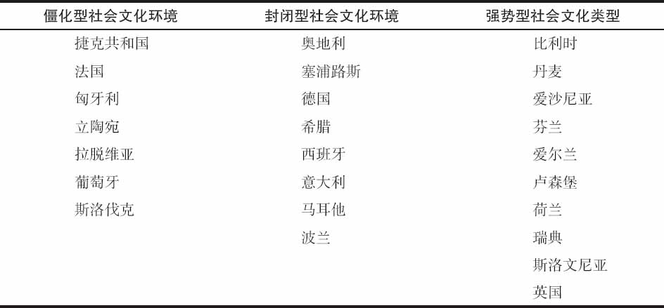 表4-2 有关创新的欧洲社会文化环境类型