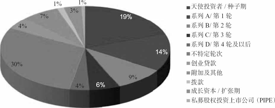 如果创业投资为创新型创业企业提供融资,天使投资者则被认为是种子投资的关键要素。如图4-8所示,天使投资者在创业投资的融资轮次中占20%。如果没有天使投资者,许多创业投资基金的投资机会根本不会存在。