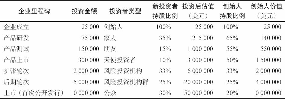 因此,创业企业往往是分阶段融资,因为这有助于将融资金额分成更小部分,从而减少创业者由于融资所导致的所有权稀释(见表4-5)。