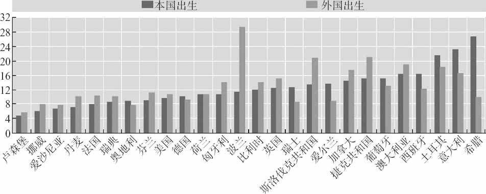 文化对创业有着重要作用,但并不是唯一决定因素。事实上,如果拥有正确的资产,一个国家便可以吸引到愿意创业的外国人。在硅谷,外国出生的创业者是成功企业的主要源泉,以至于对信息技术工人签证的限制会成为全国新闻媒体的头条。在欧洲,相当一部分的自由职业者有外国血统(见图4-25)。
