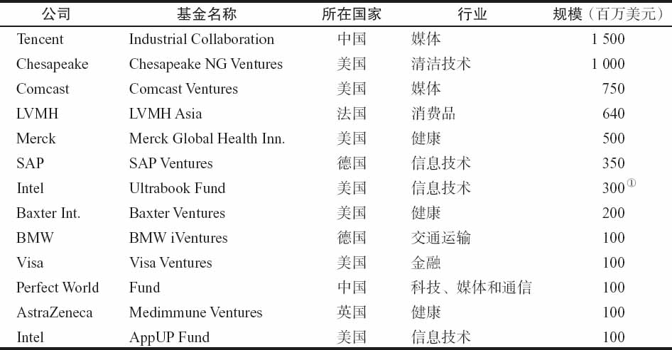 表4-7 2011年启动的最大公司创业投资计划