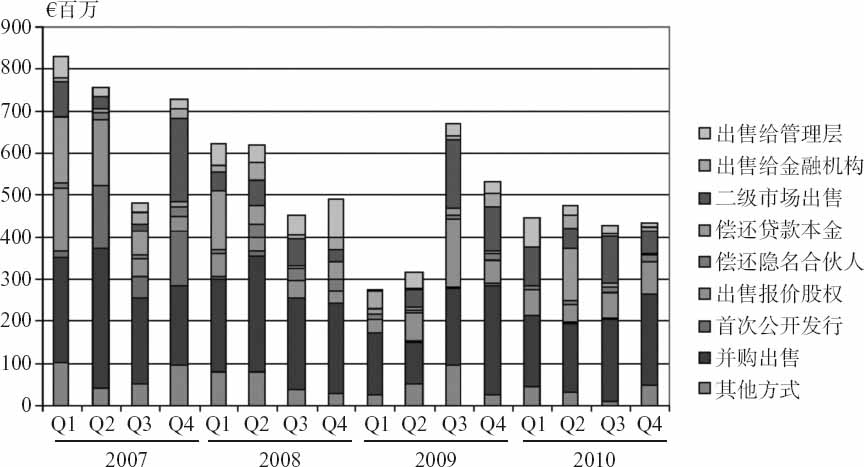 有些年轻的公司成功上市,如Iliad、Xing和Q-Cells,但仍属例外。这跟以下事实有关,即在基金有限的期限内,组合公司的增长速度未快到能够安全上市的阶段。