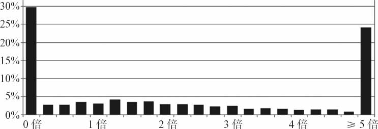 创业投资的收益离差(见图4-17)也许很难理解。相当比例的(如果不是大多数