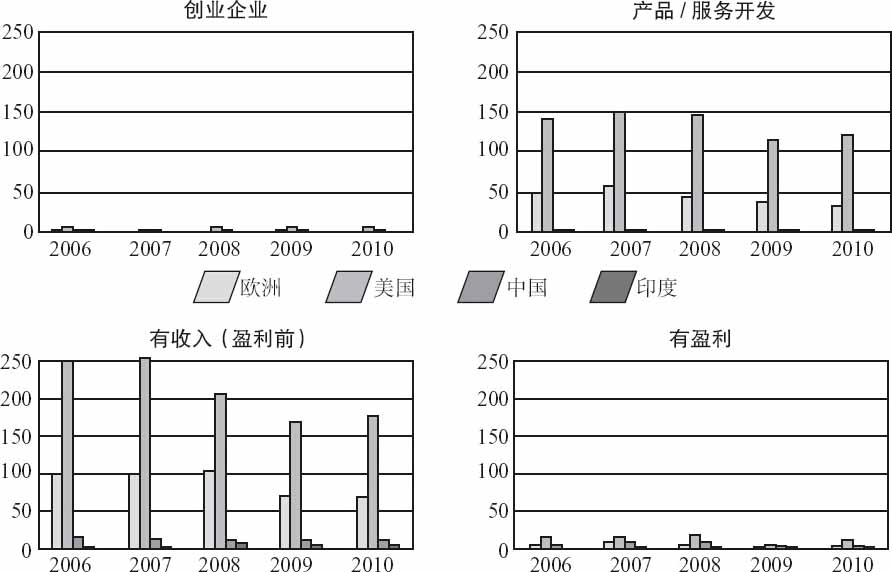 这些努力(无论成功还是失败)的溢出效应,事实上是建立创业投资生态系统的一部分。经济学家将这种效应称为外部性,这种外部性会不断累积并改造周围环境,近似创业投资集群的现象就会逐渐出现。有些国家,如智利(The Economist,2012a),已经开始努力吸引那些被美国拒绝(由于严格的签证政策)的移民企业家。