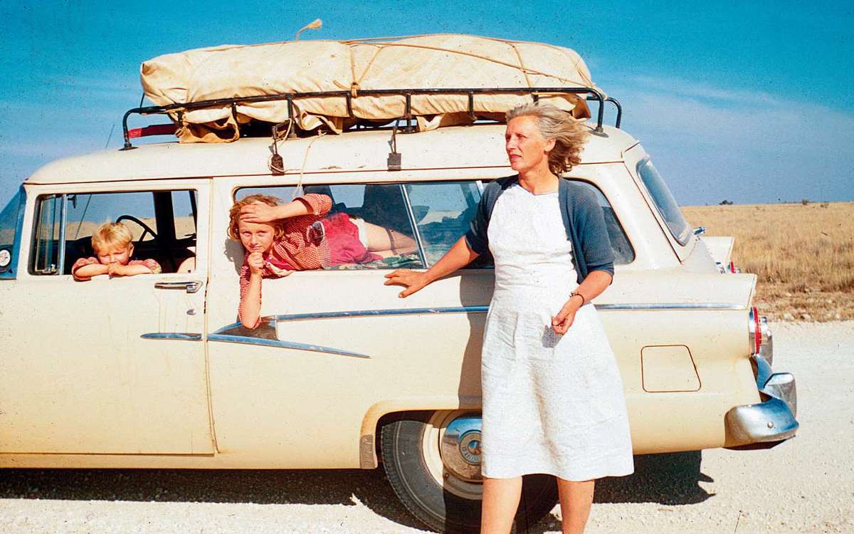 1955年,梅耶的母亲、姐姐凯和弟弟李在卡拉哈里沙漠