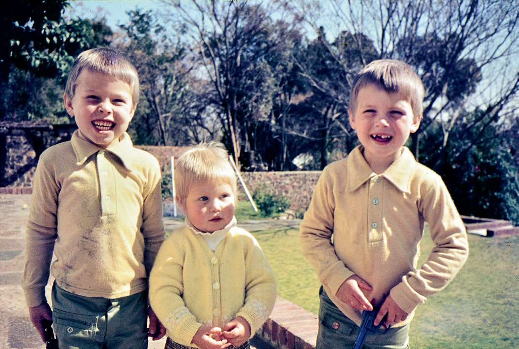 1976年,比勒陀利亚,5岁的埃隆、2岁的托斯卡和4岁的金博尔