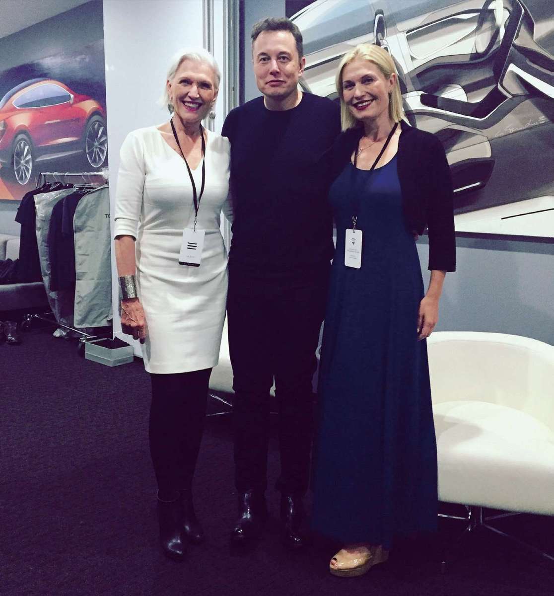 2016年,梅耶、埃隆和托斯卡在特斯拉新车型Model 3发布会上