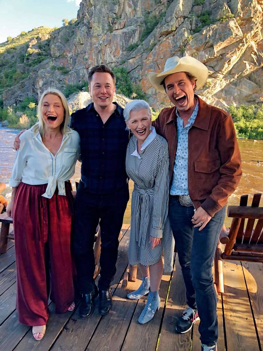 2019年,梅耶和孩子们开心地大笑,左二是埃隆·马斯克