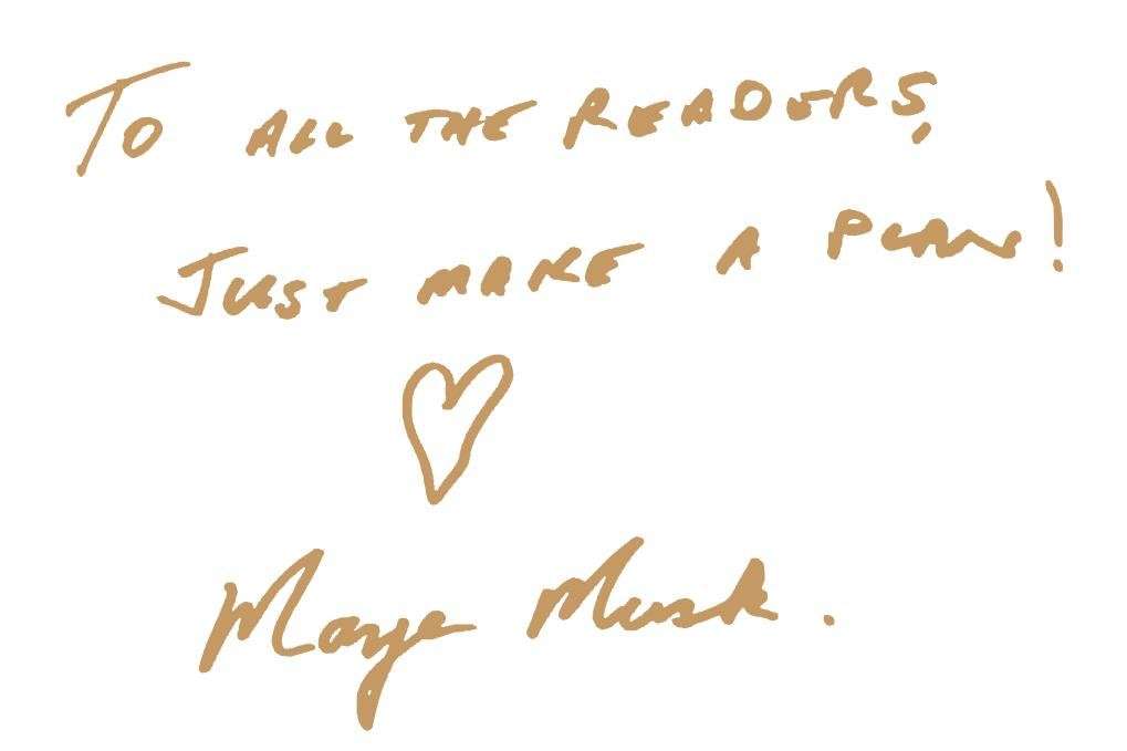 我可爱的小女儿托斯卡,以及我的两个儿子埃隆和金博尔,他们尊重和支持我所做的每一个决定。