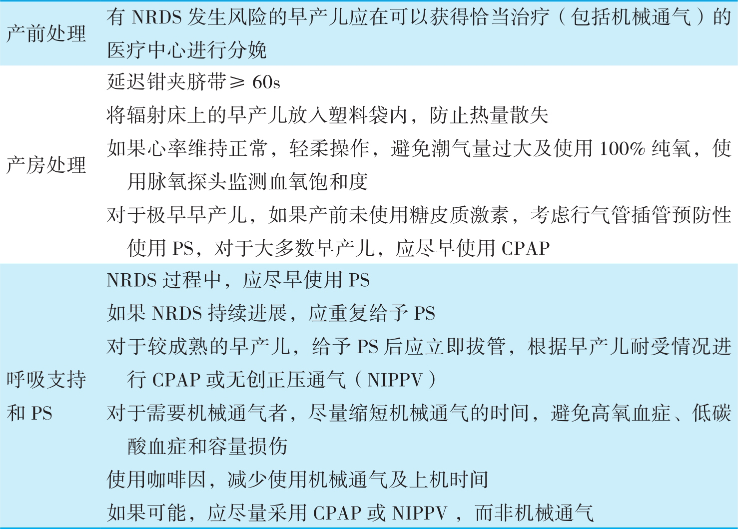 表1-2 2013年版欧洲早产儿呼吸窘迫综合征管理共识指南推荐