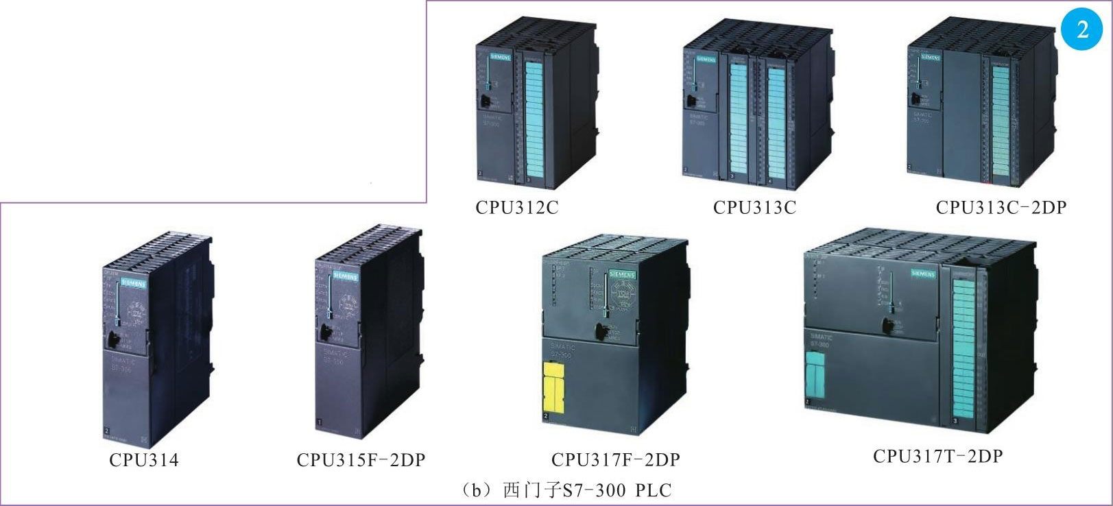 ② 西门子S7-300 PLC主机采用模块式结构,有多种不同型号的CPU模块,不同型号的CPU模块有不同的性能,如有些模块集成数字量和模拟量的I/O端子,有些集成现场总线通信接口(PROFIBUS)。