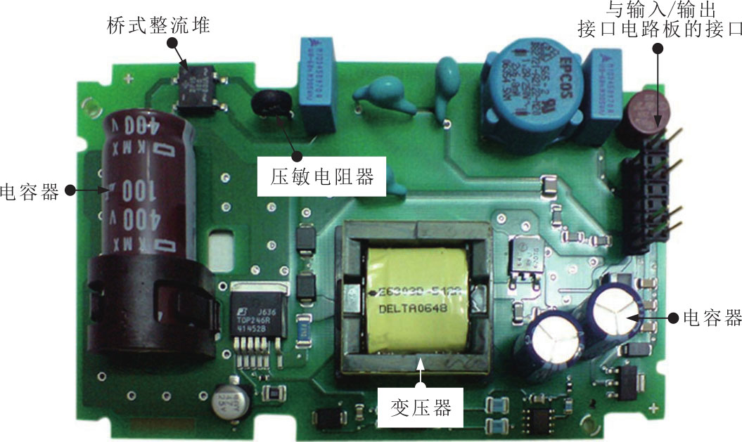 电源电路板主要由桥式整流堆、压敏电阻器、电容器、变压器、与输入/输出接口电路板的接口等构成。