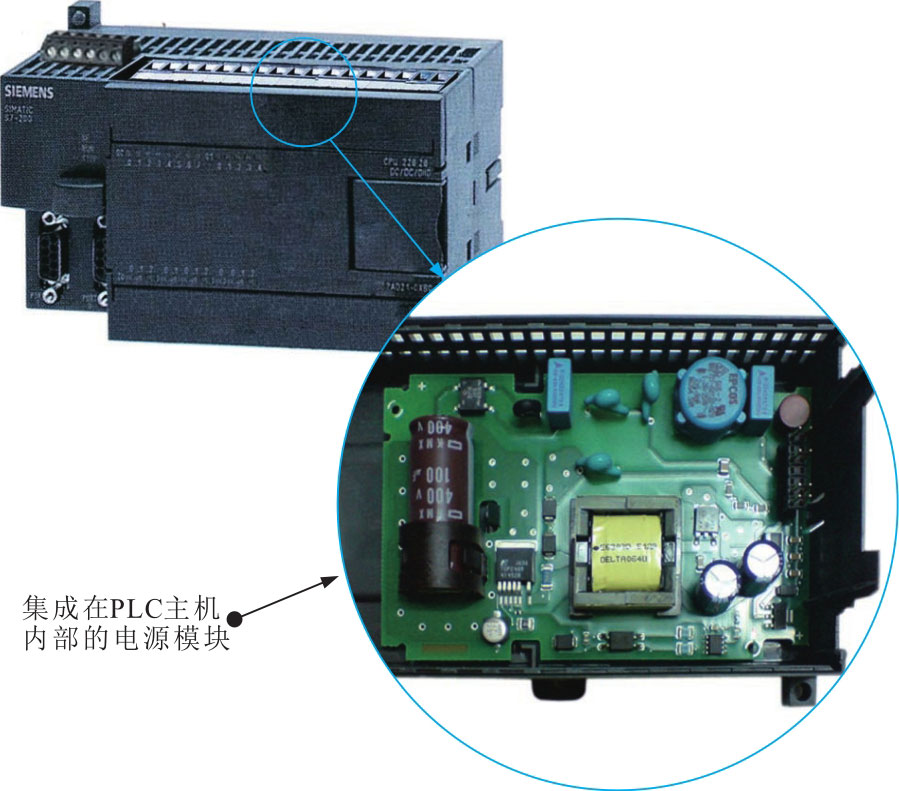一体化紧凑型PLC的电源模块集成在PLC主机内部,与CPU模块封装在一起,并通过连接总线为CPU模块、扩展模块提供5V的直流电源。