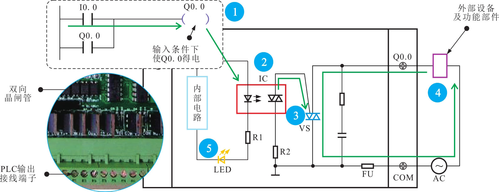 图2-48为典型PLC晶闸管输出电路的工作过程。