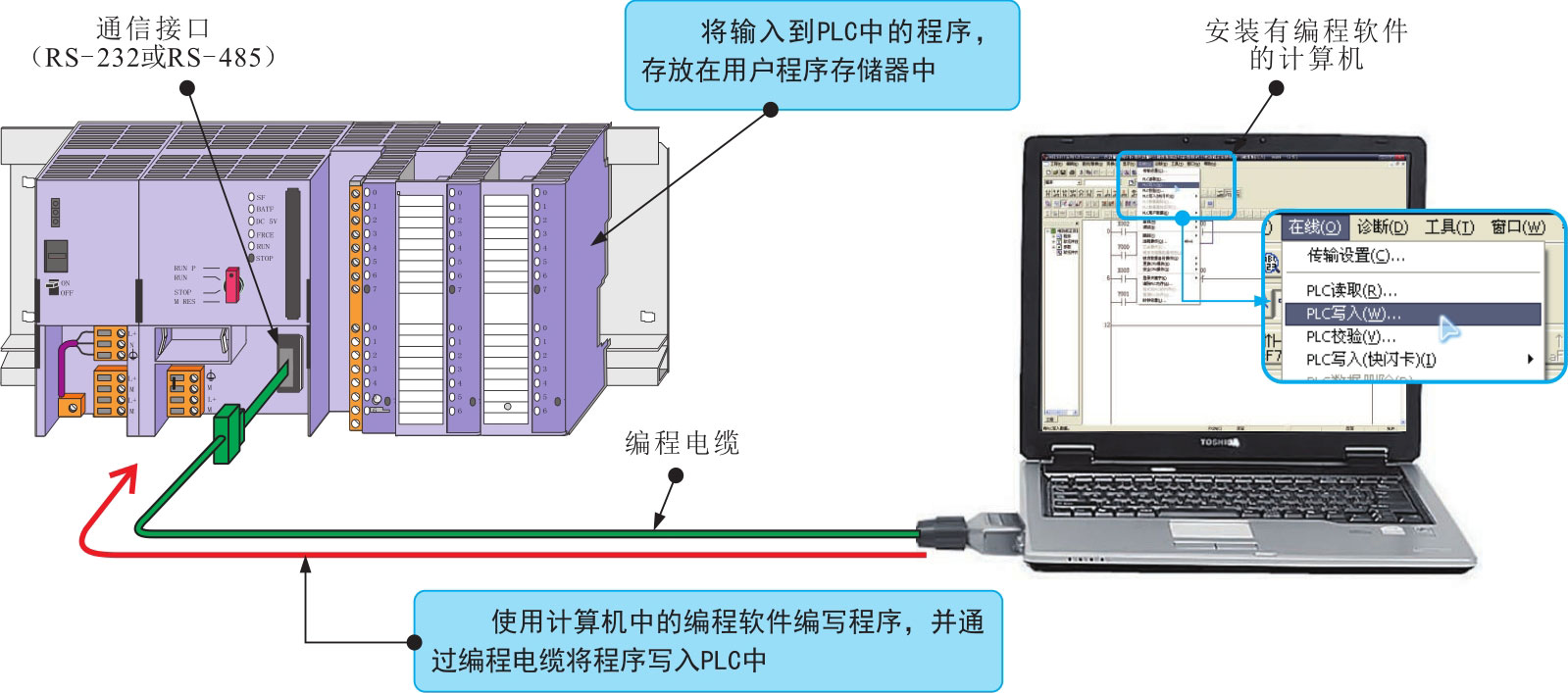 用户程序是由工程技术人员通过编程设备(编程器)输入的,如图2-41所示。