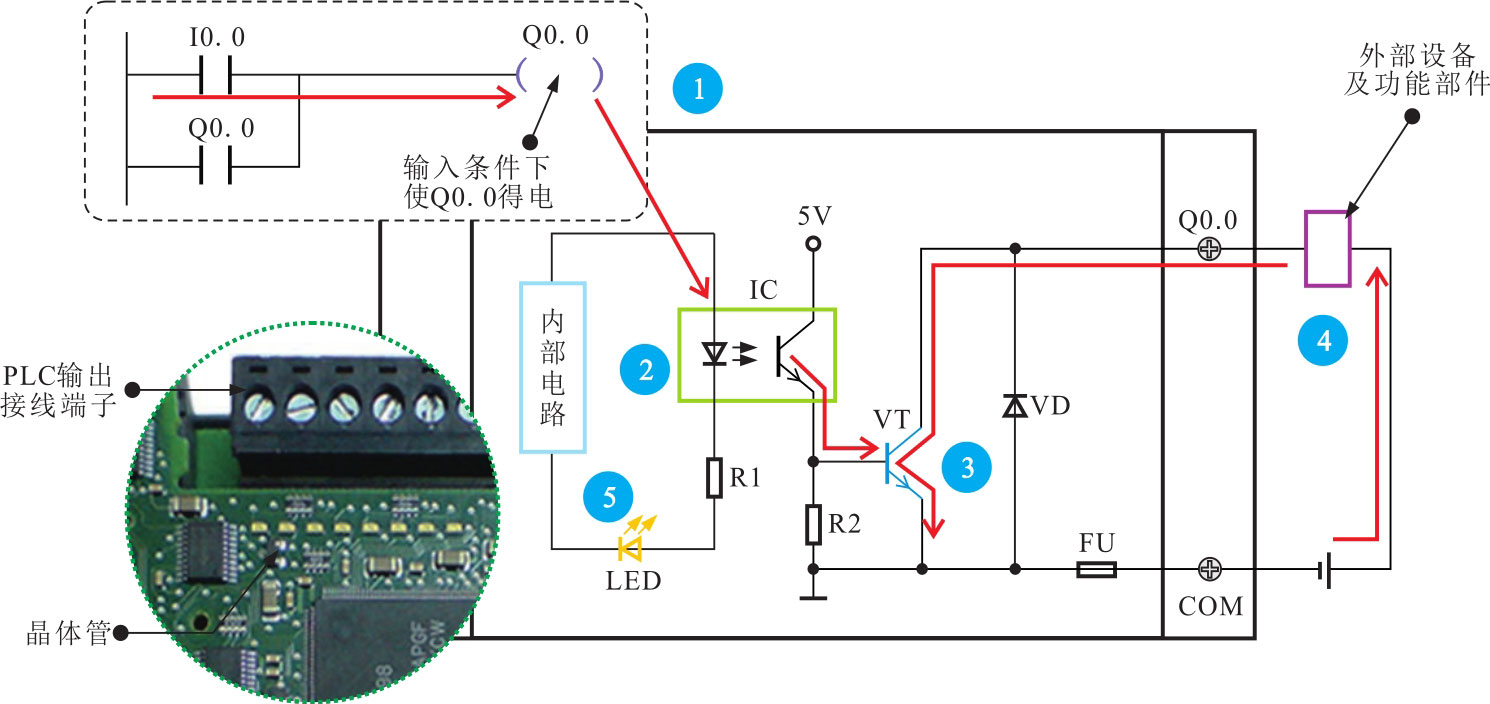 图2-47 典型PLC晶体管输出电路的工作过程
