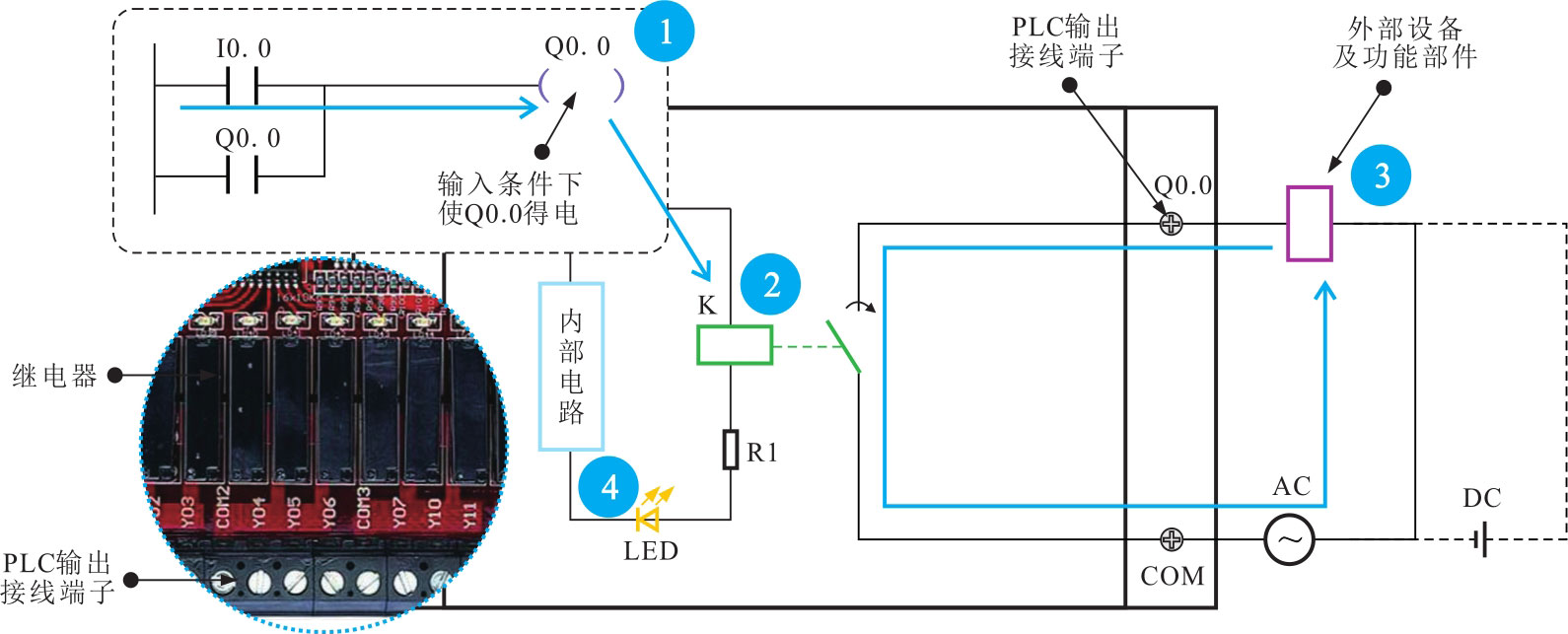图2-49为典型PLC继电器输出电路的工作过程。