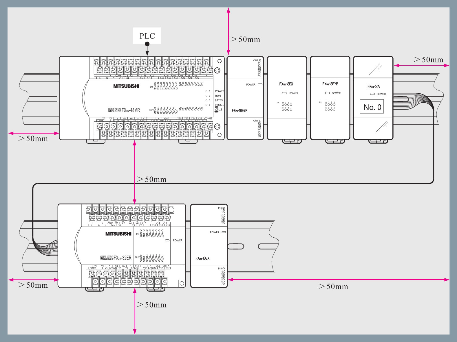 为了保证PLC工作时的温度在规定的环境温度范围内,PLC控制柜应有足够的通风空间,如果环境温度超过55℃,则应安装通风风扇,强制通风。
