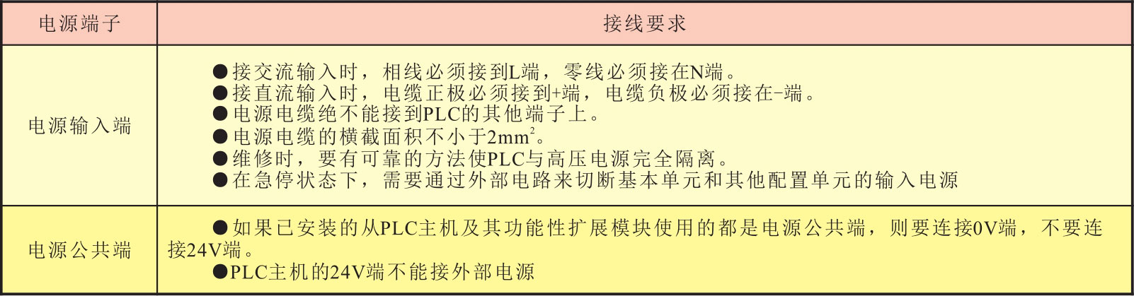 电源供电是PLC正常工作的基本条件,必须严格按照要求连接供电端,确保稳定可靠,见表4-4。