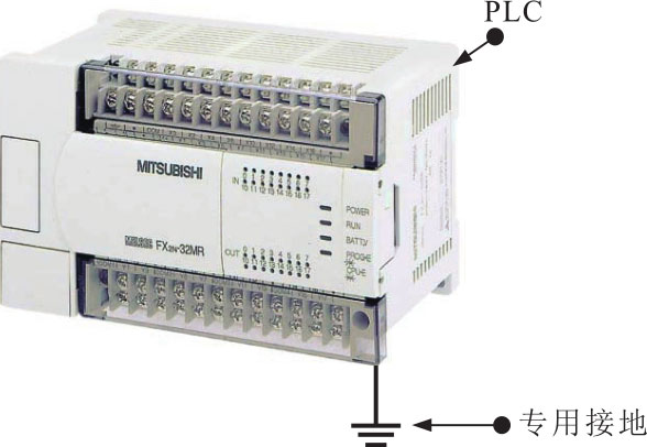 有效的接地可以避免脉冲信号的冲击干扰,因此在安装PLC时,应保证PLC的良好接地。图4-19为PLC的专用接地方式。