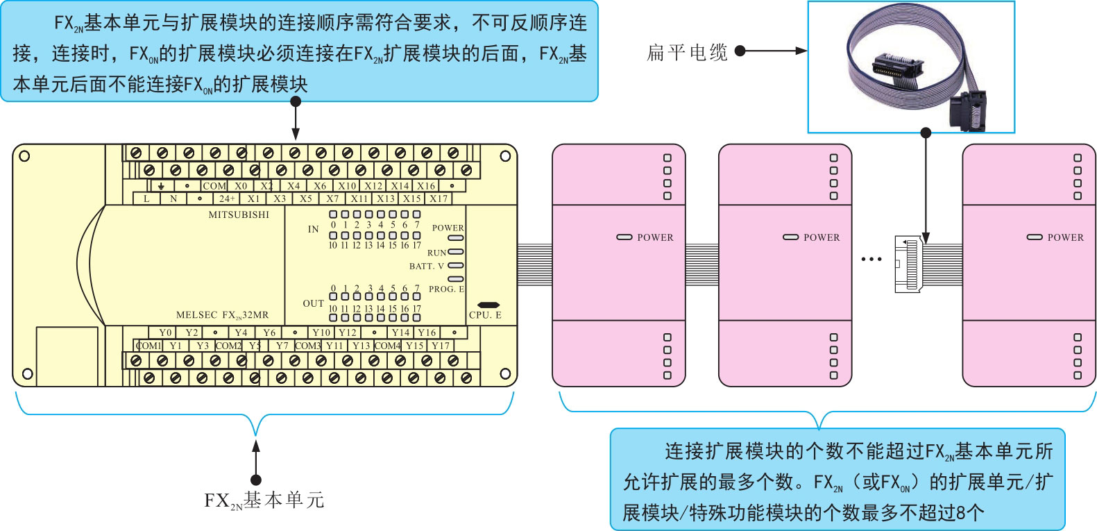① FX 2N 基本单元与FX 2N 、FX 0N 扩展模块的连接要求