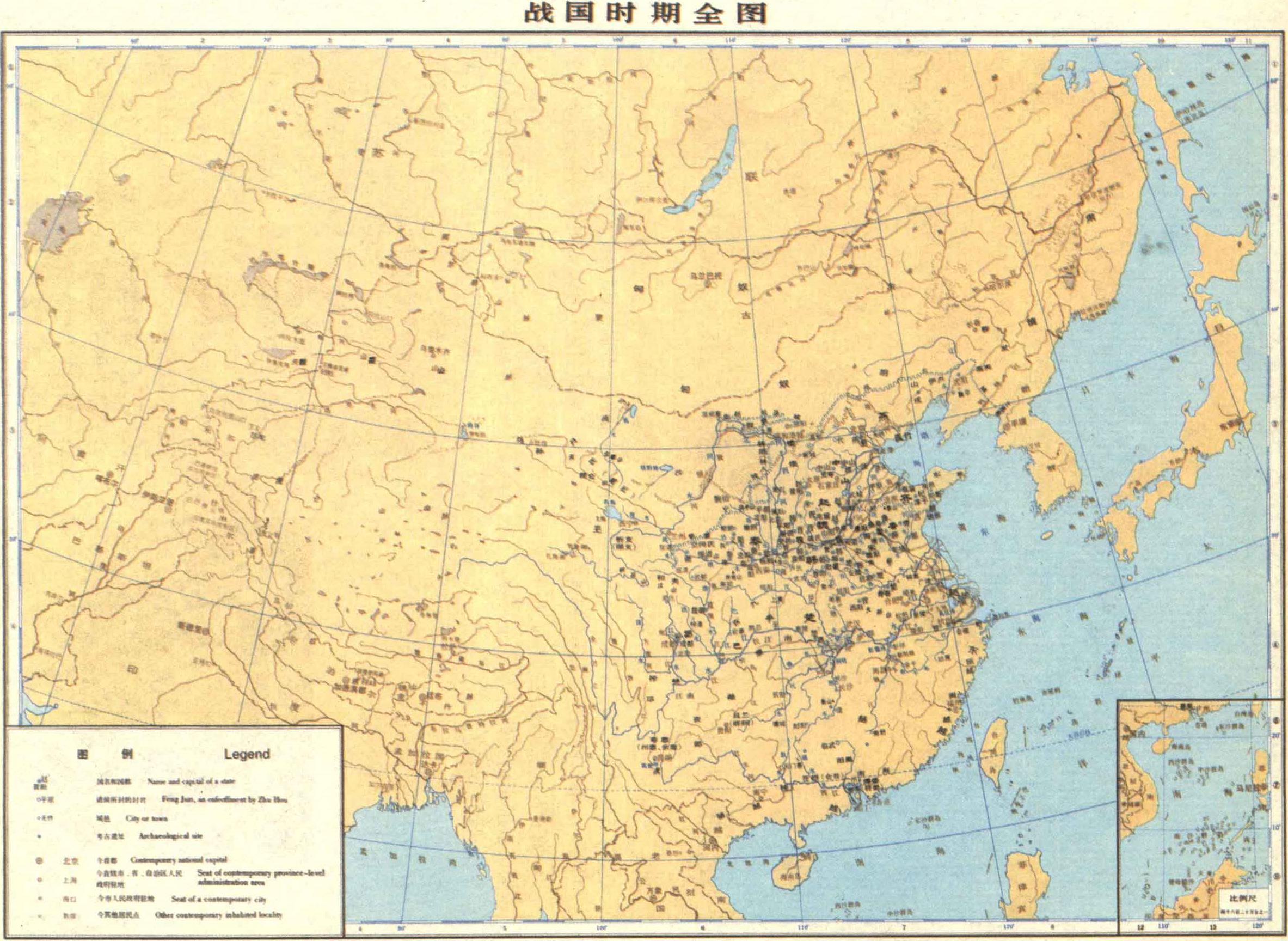 春秋以后,齐、楚、燕、韩、赵、魏、秦七大诸侯国连年战争,当时人们就称呼这七大诸侯国为“战国”。战国时期开始于公元前475年(周元王元年)《史记》的《六国年表》开始的一年,止于公元前221年(秦王嬴政二十六年)秦灭齐统一六国的一年,共255年。