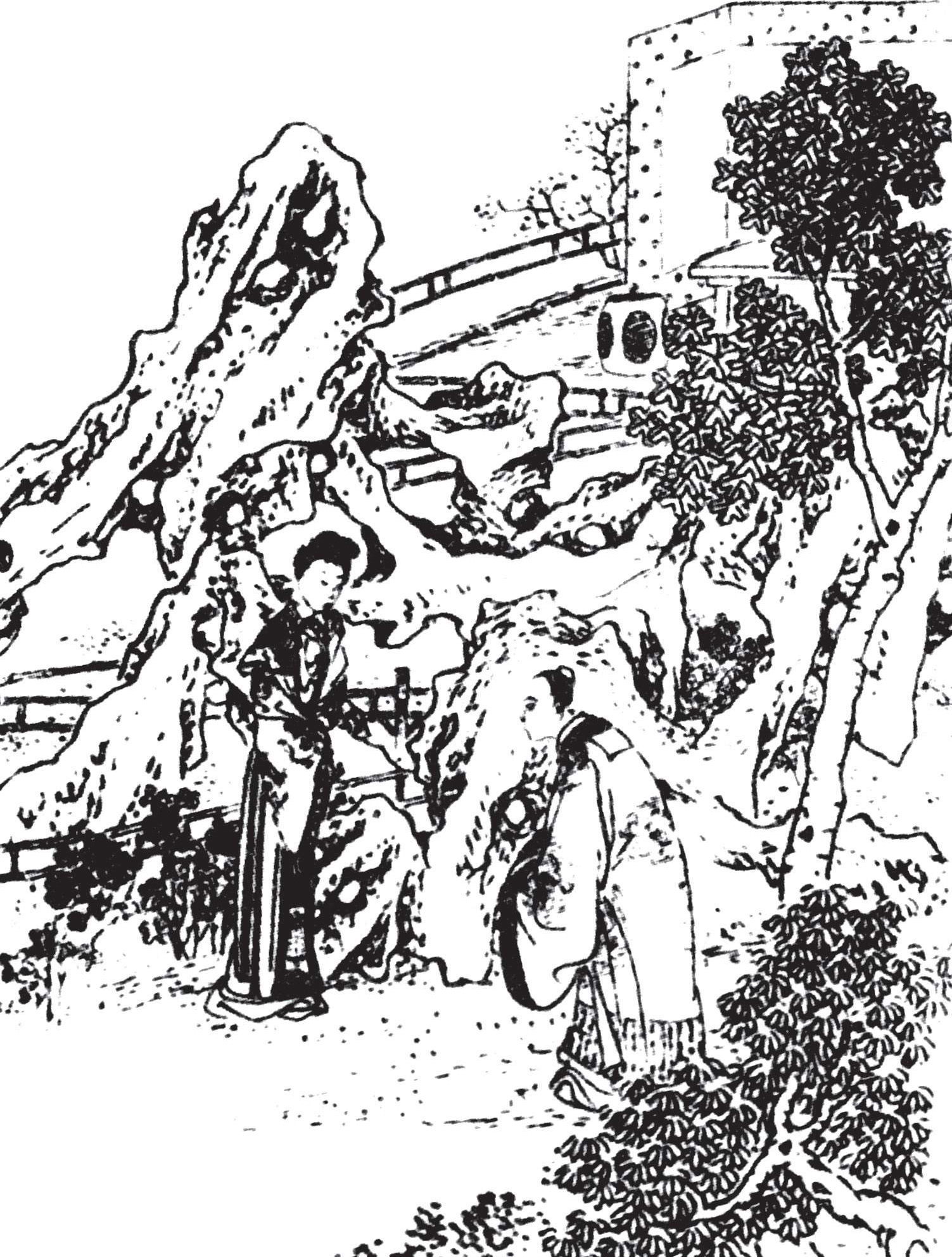 这里凤姐又劝解了秦氏一番。尤氏打发人请了两三遍,凤姐才辞别秦氏,带领跟来的婆子、丫头并宁府的婆子们,从里头绕进园子的便门来。只见黄花满地,白柳横坡,凤姐一边欣赏景致,一边漫步走来。猛然从假山石后走过一个人来,对凤姐说道:“给嫂子请安。”凤姐猛然见了,将身子望后一退,说道:“可是瑞大爷?”贾瑞说道:“嫂子连我也不认得了?不是我是谁!”凤姐道:“不是不认得,只是想不到在这里遇到。”贾瑞道:“这就是我与嫂子有缘。”一面说着,一面拿眼睛不住的觑着凤姐。