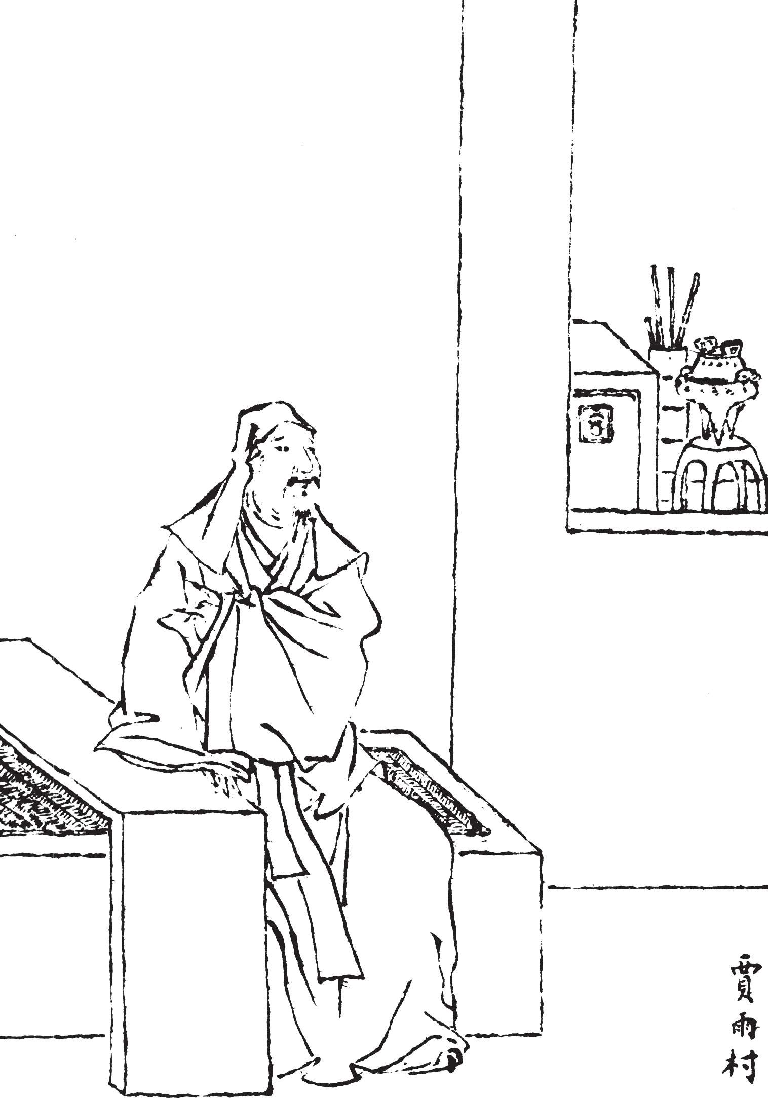 这天,雨村来到郊外,想要欣赏村野风光,信步来到一家乡村酒馆,刚进门,座上一位喝酒的客人就起身大笑说:“奇遇,奇遇。”雨村一看,此人是京都做古董生意的冷子兴。雨村欣赏冷子兴是个有本领的人,子兴羡慕雨村是个读书的斯文人,二人说话十分投机。雨村忙笑问:“老兄什么时候来了这里?今天相遇,真是奇缘。”子兴道:“去年年底到家,今年因还要去京师,顺路来探访一个朋友,要留我多住几天。我也没什么要紧的事,就在这里待几天。今天我那个朋友有事,我就闲逛来到这里,竟然遇到你!”一面说,一面请雨村入座,另外叫来酒肴。二人一边喝酒,一边说些离别以后的事。