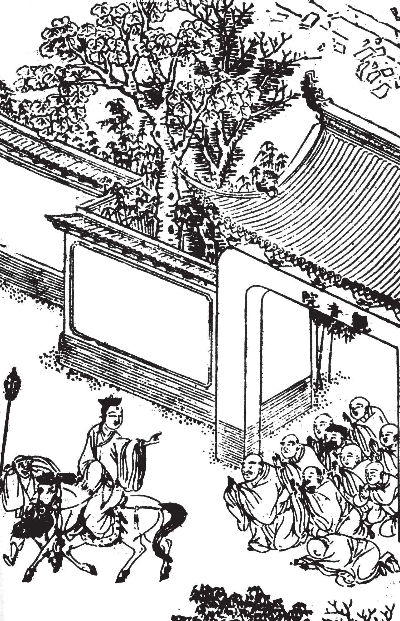 第二天一早,刷了马匹,收拾了包裹出门。众僧送出很远才回去。行者在前面引路,这时正是春天。