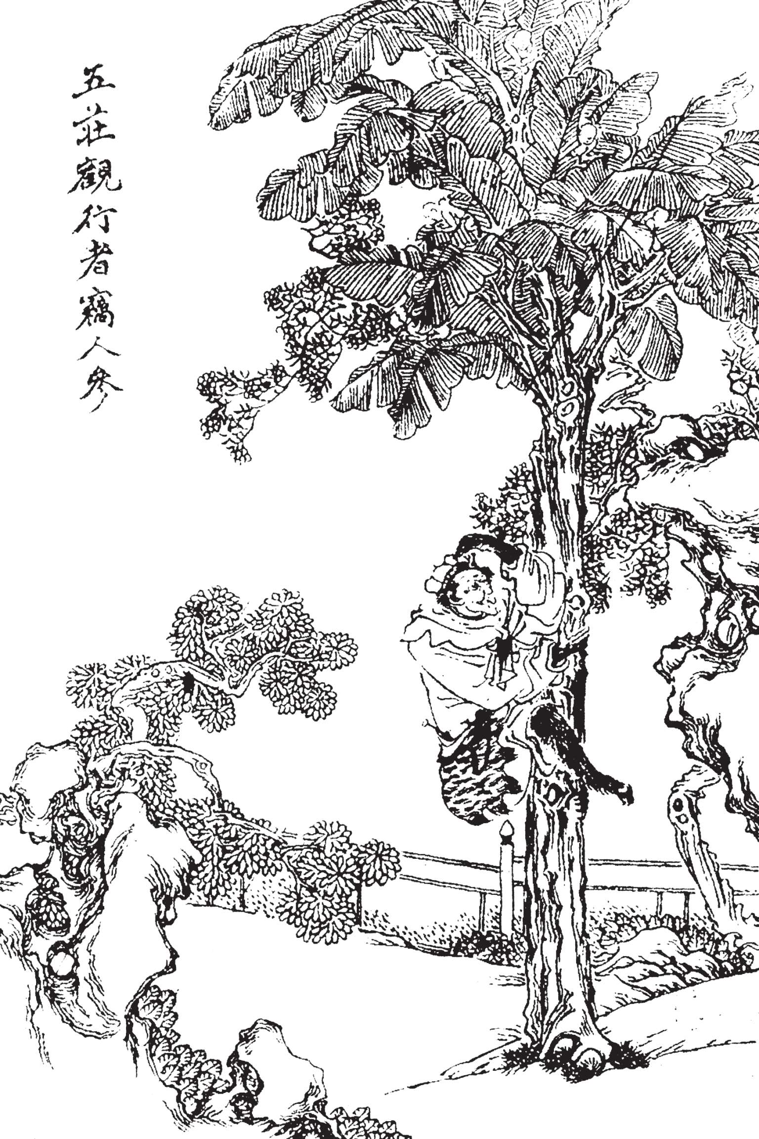 大圣想了个办法:爬上树,用一只手使用击子打果子,另一只手扯起衣襟,接住果子。他一共敲下三个果子,然后跳下树,回到厨房。八戒笑着问:“哥哥,怎么样?”行者说:“这不是吗?老孙手到擒来。我们不要背着沙僧,也叫他来。”八戒就招手叫道:“悟净,你过来。”沙僧扔下行李跑进厨房,说:“哥哥,叫我做什么?”行者说:“兄弟,你看这个是什么?”沙僧说:“是人参果。”行者说:“原来你认得,你曾在哪里吃过?”沙僧说:“小弟没有吃过,只是做卷帘大将时,曾见有海外诸仙献上这种果子给王母祝寿。”行者说:“那好,咱们兄弟一人一个。”他三人就将三个果子吃了。那八戒口大,拿过来,一口就吞下去了,却又问行者和沙僧:“你们两个吃的是什么?”沙僧说:“人参果。”行者说:“悟净,不要理他!他先吃了,又来问谁?”八戒说:“哥哥,我吃得急了些,没尝出滋味。你再去弄一个来,老猪也像你们一样慢慢吃。”行者说:“兄弟,你太不知足了!这个东西,一万年只结三十个,我们能吃一个,已经很幸运了!”他欠起身,把那个金击子对着窗户扔进童子的房间。想不到那两个道童又进房来取茶,却听见八戒还在嚷着:“再有一个人参果吃就好了。”清风心里疑惑,说:“明月,你听那长嘴的和尚说什么吃人参果的话了吗?难道他偷了我们的宝贝?”明月说:“不好了!金击子怎么会掉在地上?我们去园里看看!”他们两个急忙走去,只见花园和菜园的门都开着。到了人参果园里,数了几遍,发现果子只有二十二个了。明月说:“果子原来有三十个,师父开园时分吃了两个,还有二十八个。刚才打了两个给唐僧吃,还有二十六个。如今只有二十二个,少了四个。一定是那伙和尚偷了,我们只去骂唐僧。”他们两个来到殿上,指着唐僧就大骂起来。唐僧不知道为什么,就说:“仙童啊,有话可以慢慢说,不要骂人。”清风说:“你偷吃了人参果,怎么还不让我们说。”唐僧说:“阿弥陀佛!我见了那东西就心惊胆战的,怎么敢偷吃呢!”清风说:“你可能不会吃,但是你手下的人呢?”明月说:“就是他们,刚才我还听见他们说吃了人参果。”三藏就叫道:“徒弟们,都过来。”沙僧听见说:“不好了!师父叫我们,小道童在骂人,一定是被发现了。”行者说:“这是我们偷嘴吃,不要承认。”八戒说:“正是。”他三人只得出了厨房,来到殿上。