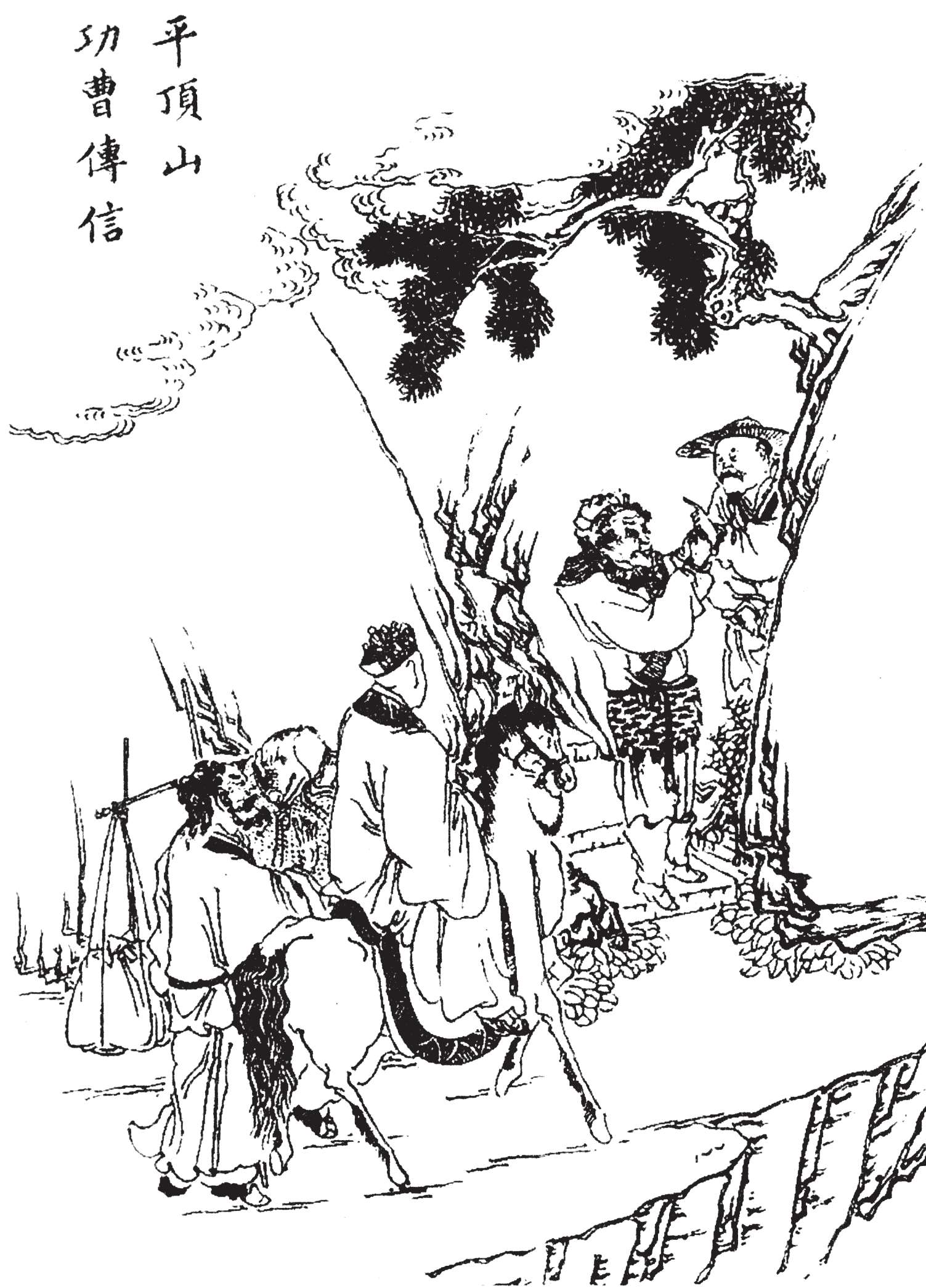行者上了山,对樵夫叫声:“大哥。”樵夫回礼说:“长老啊,你们为什么来到这里?”行者说:“我们是东土差来西天取经的。那马上的是我师父,他胆子小。刚才您说有什么妖魔狠毒,所以我来问一声,那妖魔在哪里,我让山神、土地把他赶走。”樵夫听了,大笑说:“你原来是个疯和尚。怎么敢说把他赶走?”行者说:“你把妖怪说得这么厉害,难道和他是亲戚?或者是邻居、朋友?”樵夫笑着说:“你这个疯和尚,我好意来报信,让你们小心,你倒赖在我身上。我告诉你,这座山叫平顶山,从这边到那边有六百里。山中有个山洞,叫莲花洞。洞里有两个魔头,他们画了图形,要捉和尚,指名要吃唐僧。你们如果是从别的地方来的还好,但如果是从唐朝来的,就过不去了!”行者说:“我们正是从唐朝来的。”樵夫说:“他们正要吃你们呢。”行者说:“不知他们要怎样吃?”樵夫说:“他们只要把你们捉住,就蒸着吃了。”行者笑了,说:“这个办法好!不疼,就是受些闷气而已。”樵夫说:“和尚不要说笑。那妖怪有五件宝贝,神通广大。”行者说:“没事,我们能过去。”