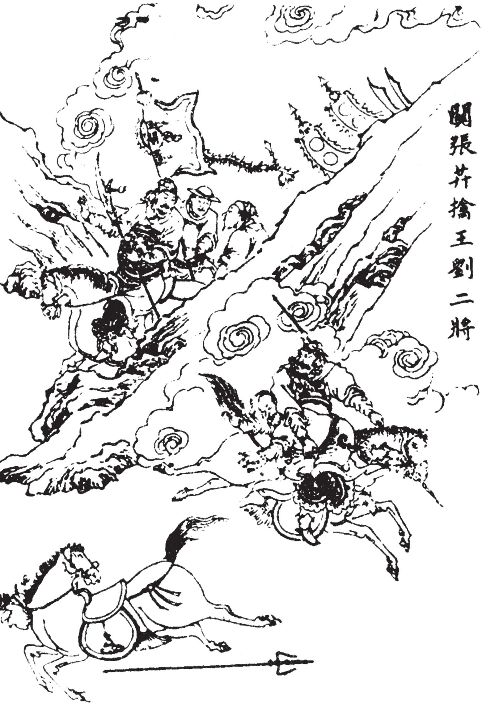 时值初冬,阴云密布,雪花乱飘,军马都冒雪布阵。云长骤马提刀而出,大叫王忠答话。王忠出来说:“丞相到此,为何不降?”云长说:“请丞相出阵,我自有话说。”王忠说:“丞相怎肯轻易见你!”云长大怒,骤马向前,王忠挺枪来迎。两马刚一相交,云长就拨马回走。王忠赶来,云长转过山坡,回马大叫一声,舞刀直取。王忠抵挡不住,正要骤马奔逃,云长左手倒提宝刀,右手揪住王忠的勒甲绦,将他生擒过来,横在马上,回到本阵。王忠的军队四散奔走。云长押着王忠来见玄德。玄德问:“你是何人?现任何职?敢诈称‘曹丞相’!”王忠说:“怎敢诈称丞相?丞相命我虚张声势,作为疑兵。丞相其实不在这里。”玄德命人供给衣服酒食,暂且关押,等捉住了刘岱,再作商议。云长说:“我知道兄长有和解之意,所以将他生擒。”玄德说:“我担心翼德暴躁,杀了王忠,所以不让他去。杀了这种人也没有益处,留他性命还有和解的余地。”张飞说:“二哥捉住了王忠,我去生擒刘岱!”玄德说:“刘岱过去是兖州刺史,在虎牢关讨伐董卓时,也是一镇诸侯。今日率领前军,不可轻敌。”张飞说:“估量他这样的人也不足为道!我也像二哥那样生擒过来就是了。”玄德说:“只担心你害了他的性命,误我大事。”张飞说:“我若杀了他,就给他偿命!”玄德于是拨给张飞三千军马,张飞领兵前进。