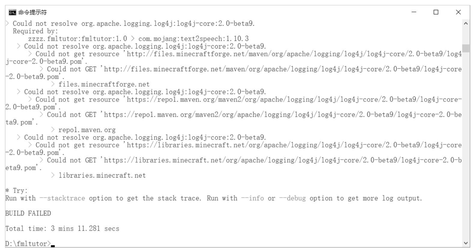 在解压完成后,进入主开发目录(作者将自己的主开发目录定为D:\fmltutor),确定名为gradlew.bat的文件在该目录下,然后在该目录打开控制台,并输入以下命令。