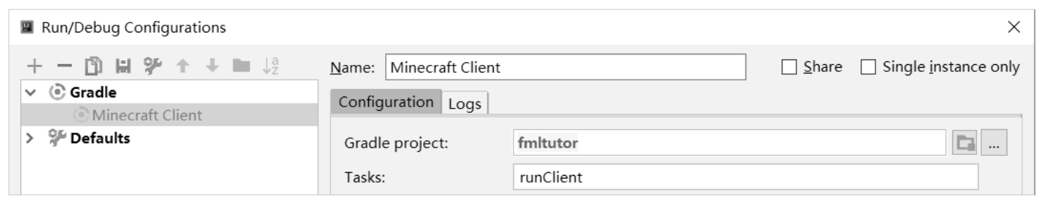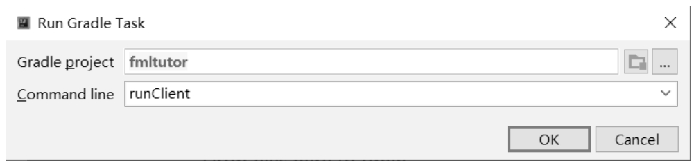 然后我们会看到IntelliJ IDEA弹出一个界面。在其中Command line处输入待执行的任务,也就是runClient或者runServer。