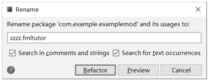 那么,把包名修改为一个更合适的名字显然会更好。作者使用的是zzzz.fmltutor。这时候我们使用IDE的一个简单的功能:修改名字。这里以IntelliJ IDEA为例,Eclipse的使用方法大同小异。
