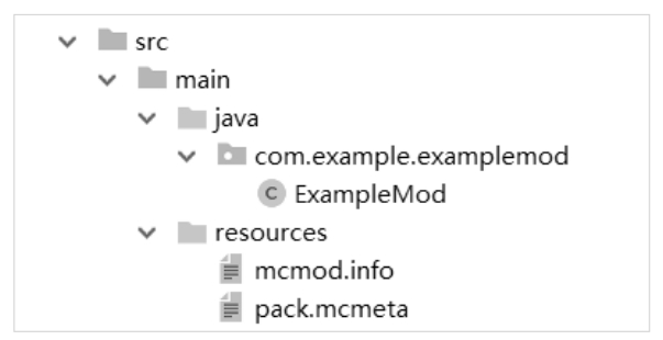 Mod的资源文件包括但不限于方块物品材质、模型、声音、语言文件(方便国际化)等,大部分的文件结构和材质包的结构差不多。资源文件中有一个名为mcmod.info的文件,位于资源文件夹的根目录,是描述Mod的关键文件,里面存放着Mod的若干相关信息,后续章节会再次提到。这个目录中还有一个名为pack.mcmeta的文件,这是由于FML是将Mod中的资源文件以材质包的方式加载的,这个文件是材质包的描述文件。