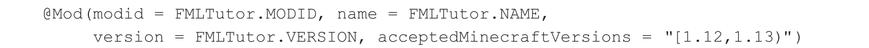 ● 调用了FMLTutor类的MODID、NAME和VERSION字段,之所以调用的是类的字段而不是类的实例的字段,是因为这个字段是静态的。