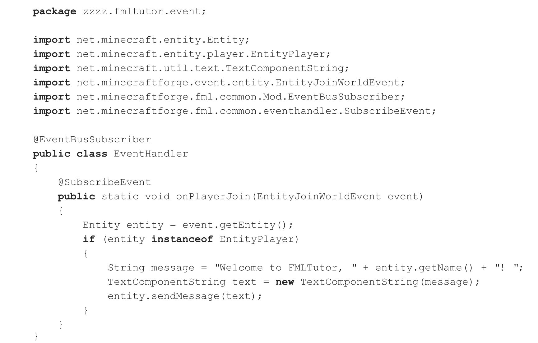 ● 为EventHandler类定义了一个静态的,名为onPlayerJoin的方法。