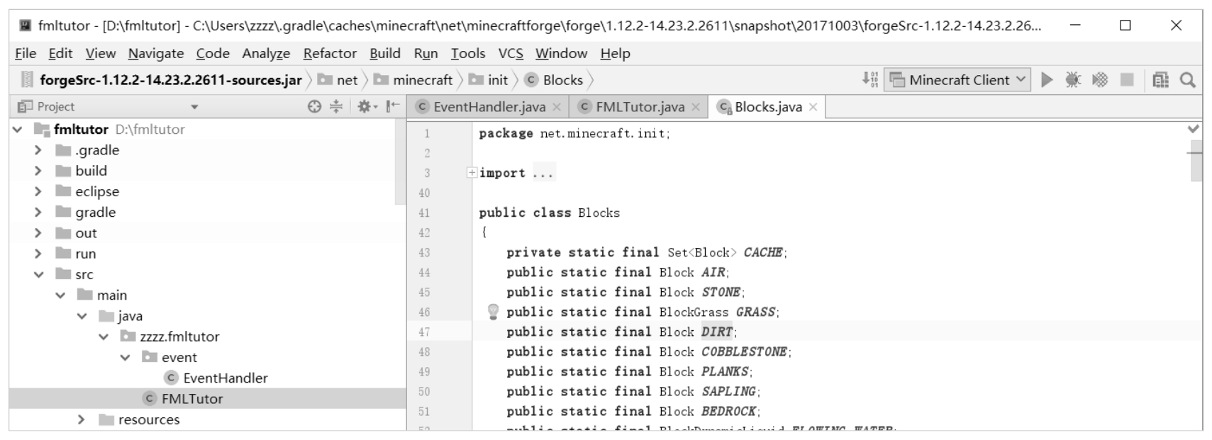 ● 全大写加下画线(Upper Snake Case),即将所有字母大写,然后单词之间使用下画线分隔,比如我们在Blocks类看到的所有字段,在Mod主类添加的MODID和VERSION两个字段等。
