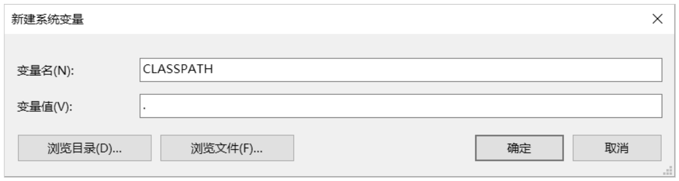 新建一个名为CLASSPATH(同样不区分大小写)的变量,其值只有一个小数点“.”。