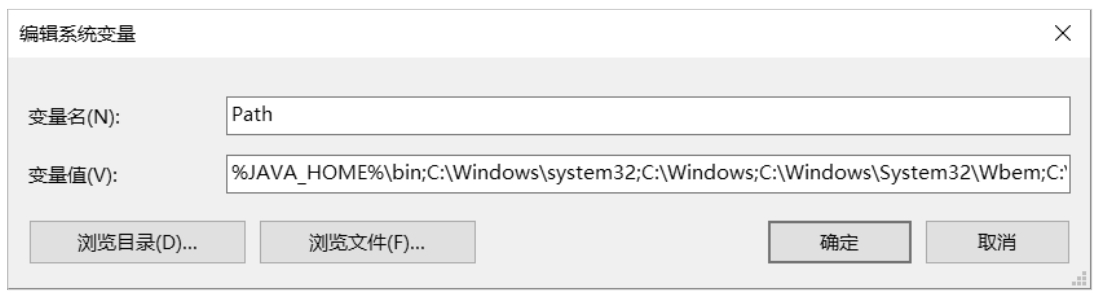 打开Path(同样不区分大小写)变量,在变量值的最前面添加%JAVA_HOME%\bin;(注意最后的分号)。