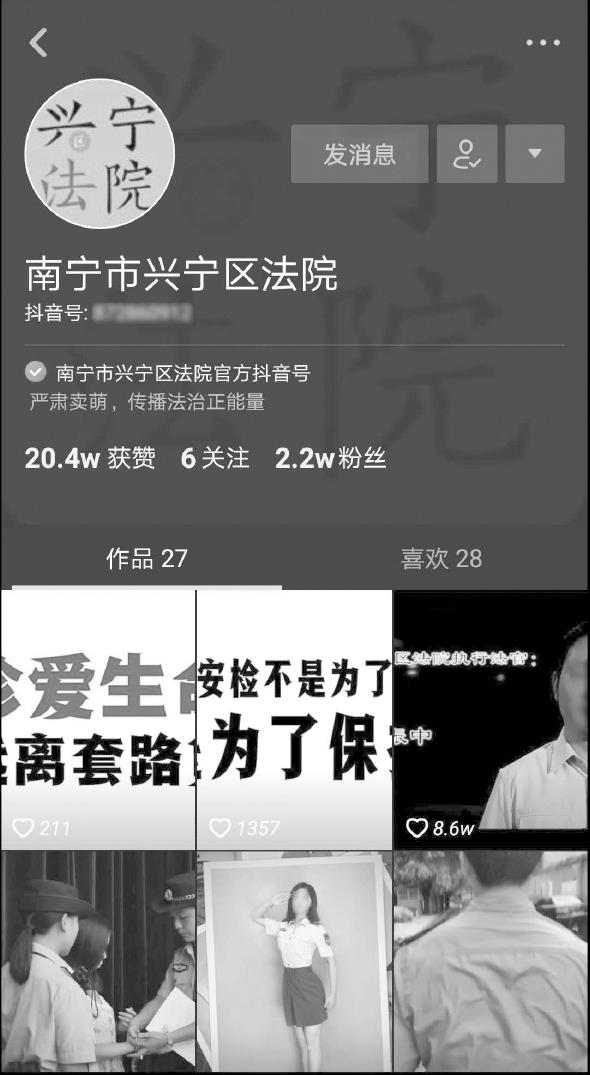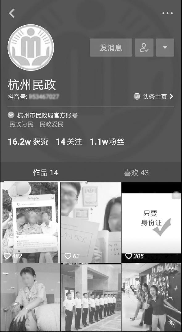 除了以上账号,还有很多其他优秀的账号,例如北京农业(北京市农业局申请开通,如图2-11所示,关注量为3万)、西安消防(西安消防队申请开通,如图2-12所示,关注量为18万,获赞222.7万)、杭州民政(浙江省杭州市民政局申请开通,如图2-13所示,关注量为1.1万,获赞16.2万)、南宁市兴宁区法院(南宁市兴宁区法院申请开通,如图2-14所示,关注量为2.2万,获赞20.4万)。由于篇幅有限,其他账号不再赘述。