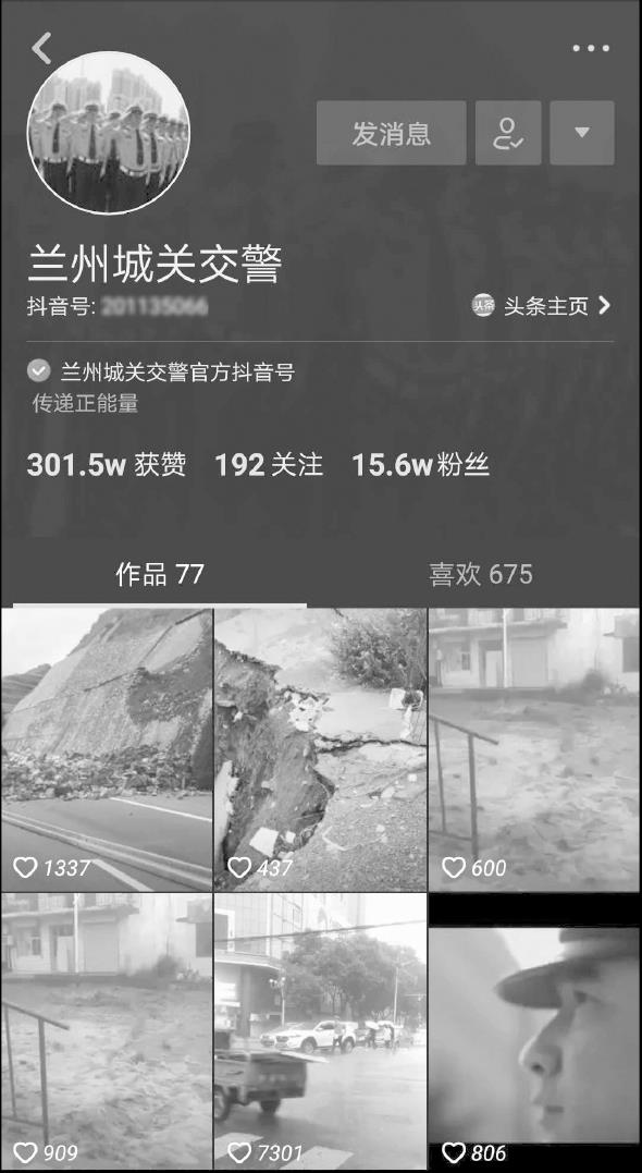 目前,公安系统是所有政府机构系统中开设短视频账号最多的,也是做得比较好的。例如徐州市公安局开设的抖音账号“平安徐州”(如图2-5所示)、甘肃省兰州市城关区交警大队开设的抖音账号“兰州城关交警”(如图2-6所示)等,他们运营得都非常好,关注量均在10万以上,而且内容都非常具有创意,在传递机构工作内容的同时又不失幽默、风趣,深受大众的喜爱,不但传递出了机构的职责内容,也让大众进一步了解了机构的责任与公安人员的奉献,进而拉近了机构、公安人员与大众的距离,可谓一举多得。
